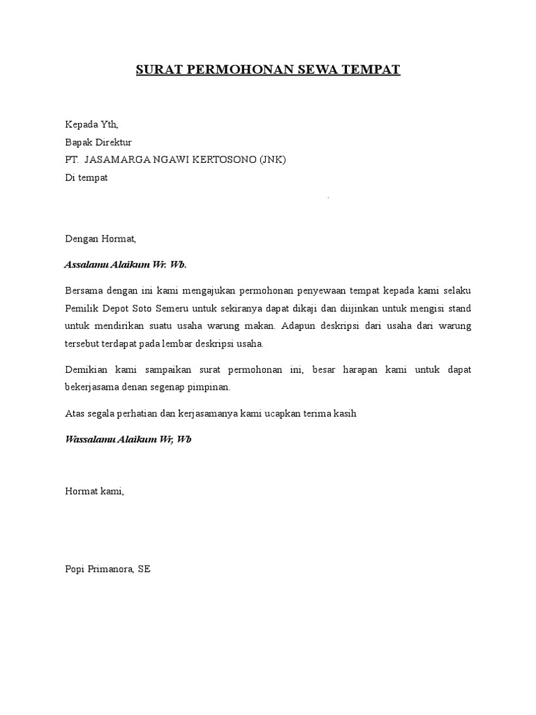 Surat Permohonan Sewa Tempat Pdf