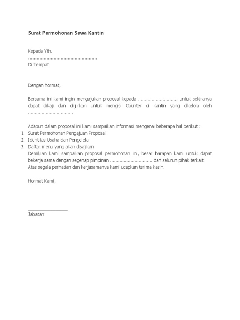 . Contoh Surat Berhenti Kerja Dalam Bahasa Melayu Bahasa. Download Proposal Sewa Tempat Di Mall PDF 900 MB SamPDF SamPDF Tips. Inilah contoh surat permohonan sewa tempat dan informasi lain yang berhubungan dengan topik contoh surat permohonan sewa tempat serta peluang bisnis investasi keuangan di website ini.